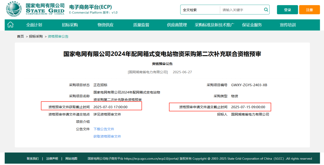 国家电网有限公司2024年配网【箱式变电站】物资采购第二次补充联合资格预审公告